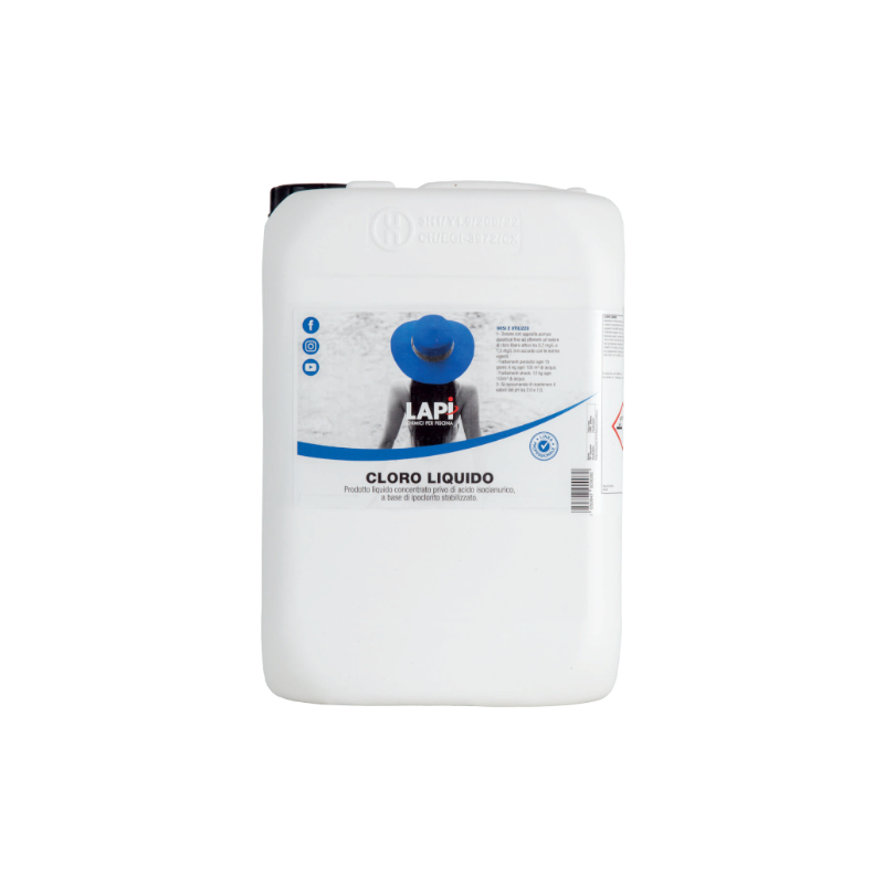 Prodotto a base di ipoclorito di sodio stabilizzato idoneo al trattamento dell’acqua di piscine.
