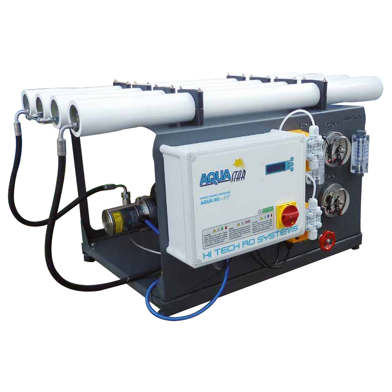 La pressurizzazione è garantita da speciali pompe progettate per lavorare 24 ore al giorno in continuo e costruite in acciaio INOX AISI 316 o Superduplex. Le membrane TFC LOW ENERGY specifiche per acque di mare consentono un’elevata produzione di acqua demineralizzata, riuscendo ad ottenere ottime prestazioni con ridotti costi di energia.