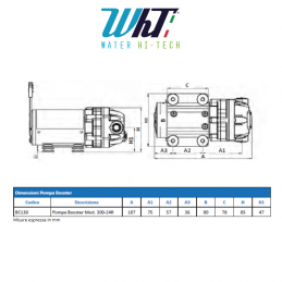 La Pompa Booster WHT è progettata per migliorare le prestazioni dei sistemi ad osmosi inversa, incrementando la pressione dell'acqua e la quantità di acqua affinata. I piedi in gomma riducono le vibrazioni e il rumore, garantendo un funzionamento silenzioso.